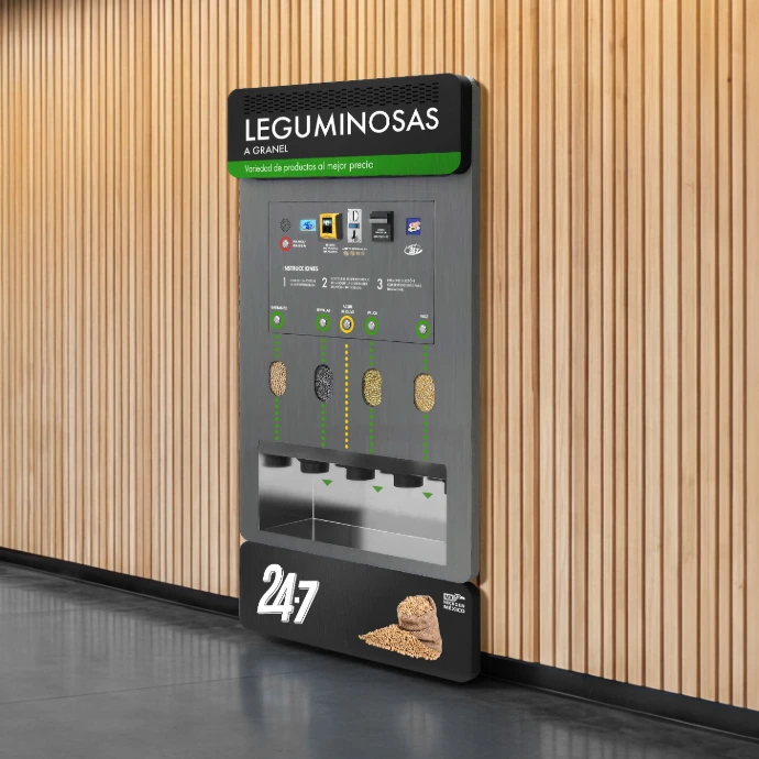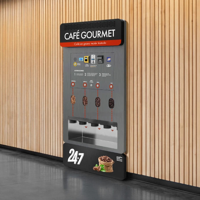 Ideal para grocery, mercados y tiendas saludables. Operación automatizada 24/7 que impulsa rotación constante por porción y mejora el margen con bajo mantenimiento.